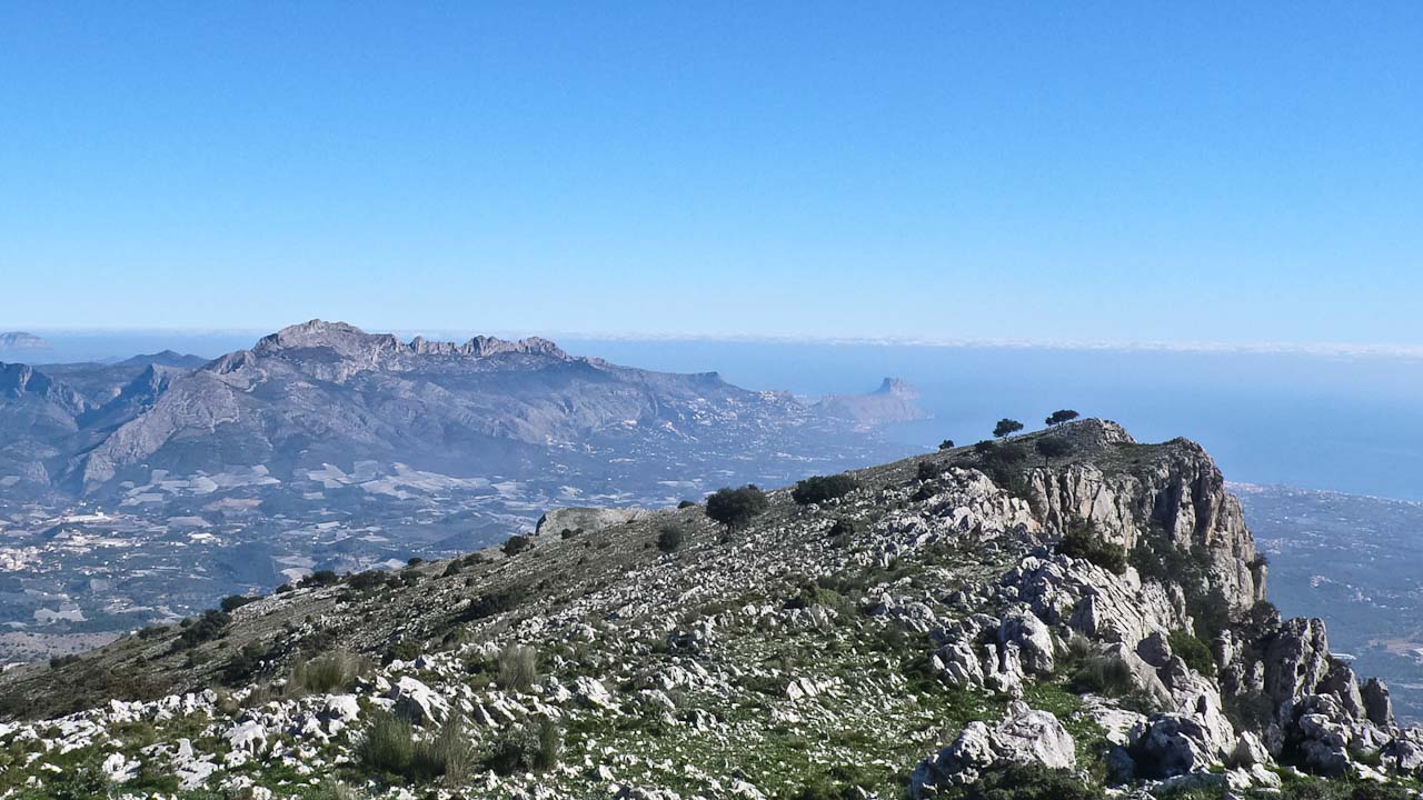 Diese Woche führten wir eine Kundin aus Benidorm auf den Gipfel des Ponoig. Tony holte Clare morgens um 09:00 Uhr von ihrer Unterkunft in Benidorm ab und fuhr mit ihr zum Parkplatz am Fuße des „schlafenden Löwens“. Von dort startete die Wanderung entlang der Südflanke des Berges hinauf zum „Col del Llamp“.